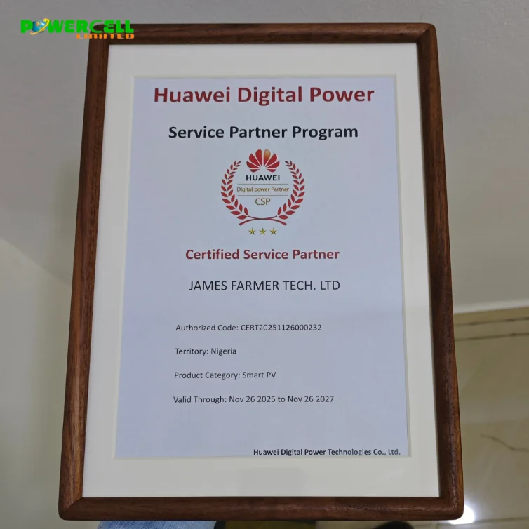 Powercell Limited continues to strengthen its position in Nigeria’s renewable energy sector as James Farmer Tech, our sister company, has been officially certified as one of only two Huawei Digital Power Service Partners in Nigeria.